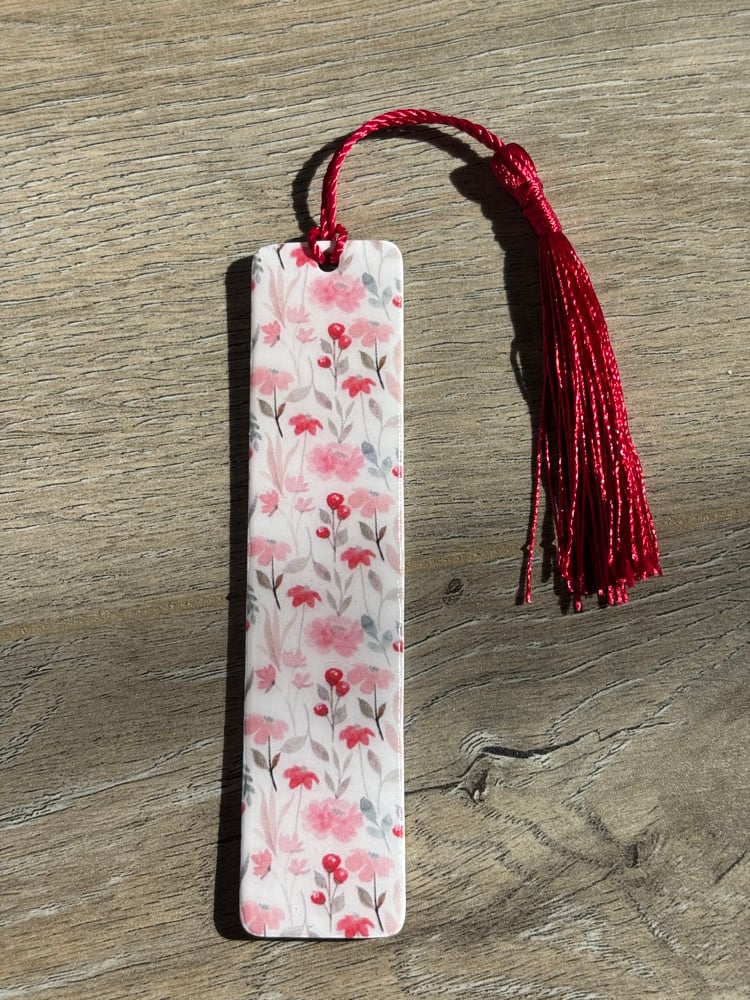Polymer clay bookmark sealed with resin.