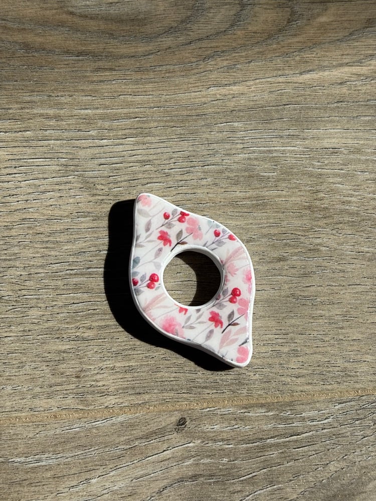 Polymer clay page holder sealed with resin.